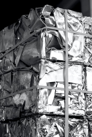 unpainted aluminum scraps pressed in cubes, black and white photography