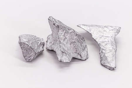 Pieces of pure aluminum metal stock images. Laboratory accessories stock photo. Laboratory equipment on a silver background. Al, chemical element stock images