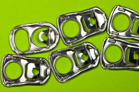 ring pulls on green background