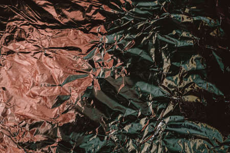 Crumpled foil texture. Crumpled paper is shiny with a color tint.