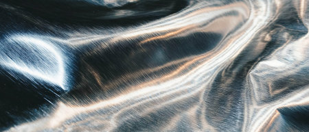 Modern abstract foil background lit by colorful teal lamp resembling water