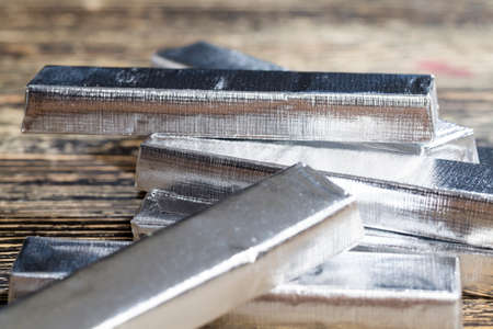 Pile of aluminum bar close-up