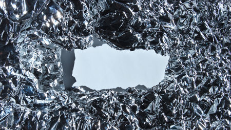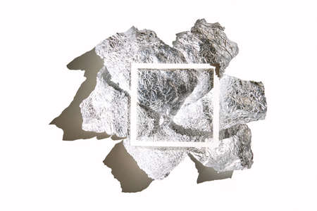 Torn Frame of crumpled foil with white space for infirmation. Copy space