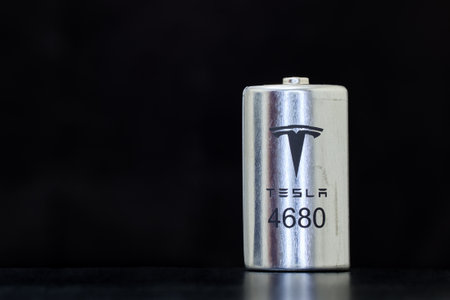 New 4680 cell Tesla battery cell with new chemistry, St. Petersburg, Russia, January 9, 2022.