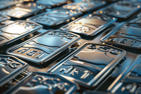 A row of silver coins with the numbers 61, 61, 61, 61, 61, 61, 61, 61, 61, 61, 61, 61, 61, 61, 61, 61, 61, 61, 61, 61, 61,