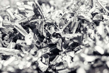 Macro photo of iron metal shavings after CNC drilling lathe machine, Industrial background