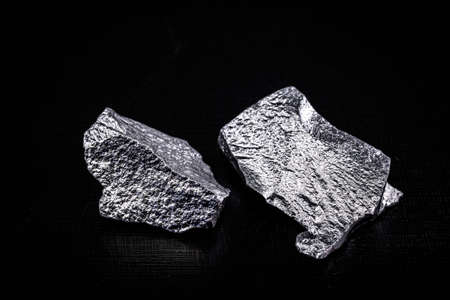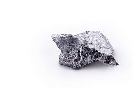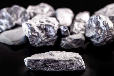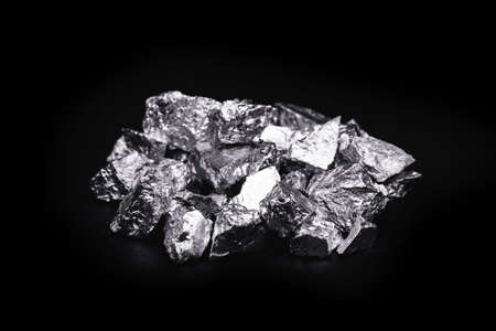 Manganese, manganese or magnesium stone is a chemical element, it is in the manufacture of metal alloys. Silver colored pray, industrial use. Pray on black isolated background.