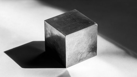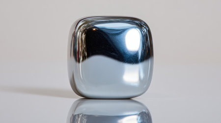 A sleek silver metallic cube showcases a smooth, reflective surface, creating a minimalist aesthetic. Ideal for modern art, design projects, or abstract concepts.
