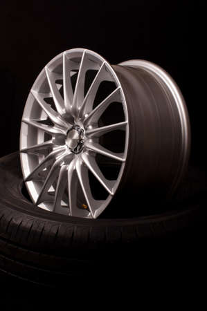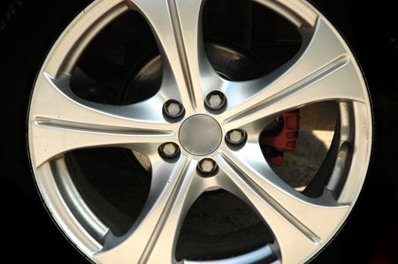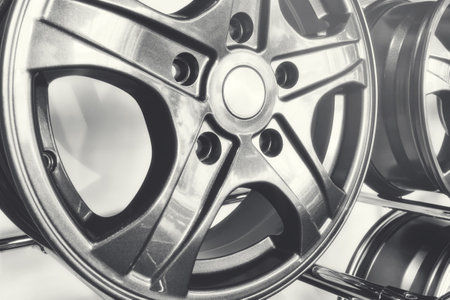 closeup alloy car wheels with soft-focus and over light in the background