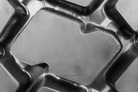 a pile of shiny faceted steel blocks - full frame close-up with selective focus, view directly from above