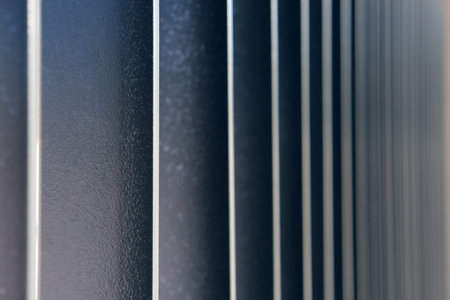 Close-up of vertical dark bars or panels, possibly a fence or railing, with shallow depth of field highlighting texture and alignment.