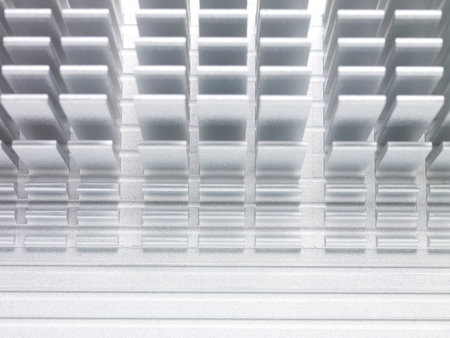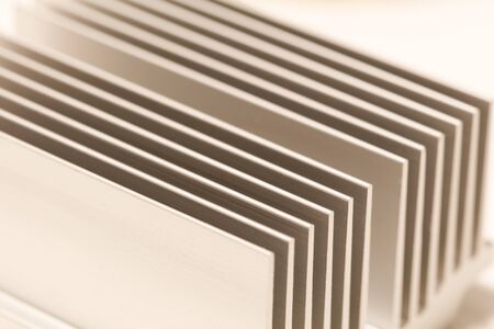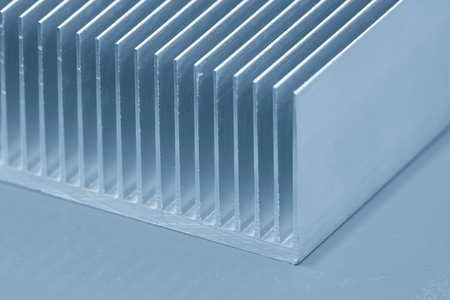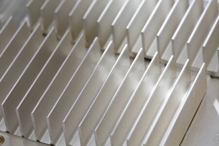 A striking close-up image of aluminum cooling fins, illustrating intricate details, patterns, and industrial precision, perfect for showcasing modern technology and design.
