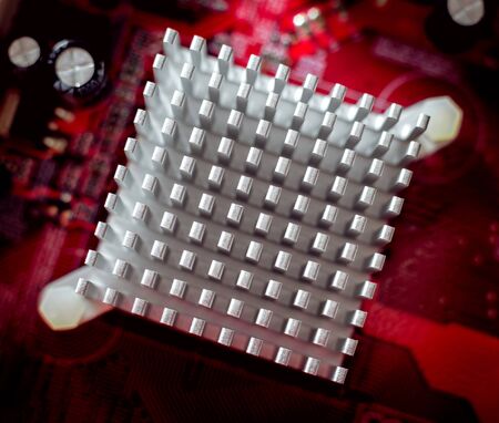 Close up a heat sink on a motherboard