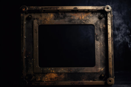 metal detector frame over black background with grunge texture, created with generative ai