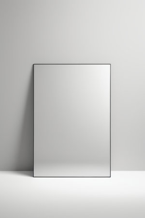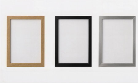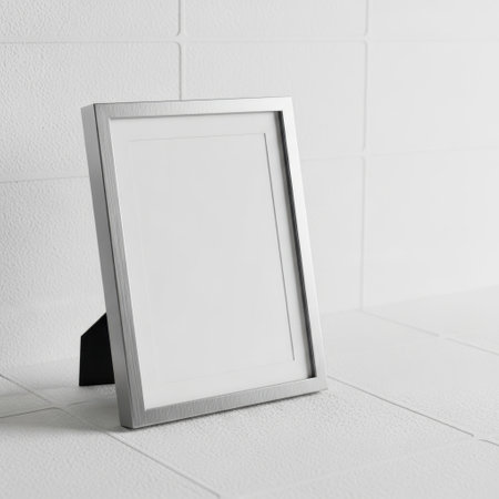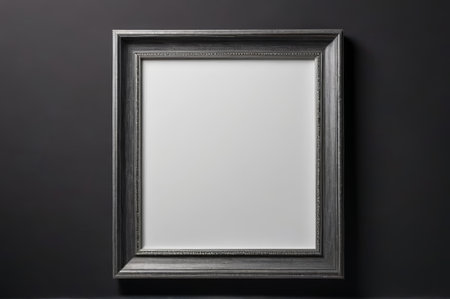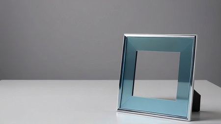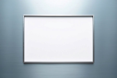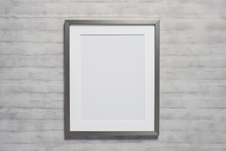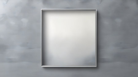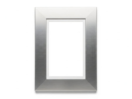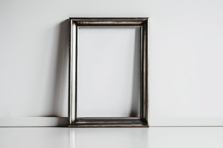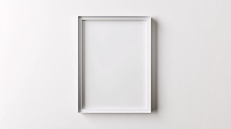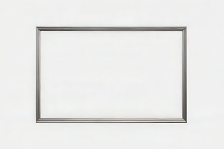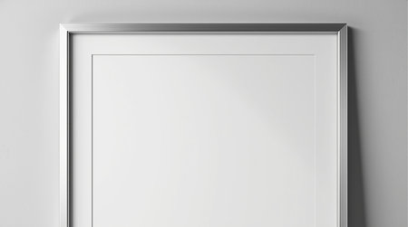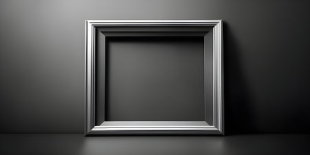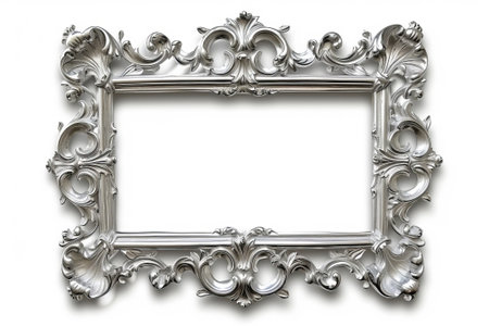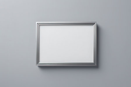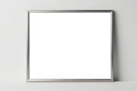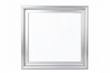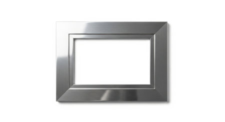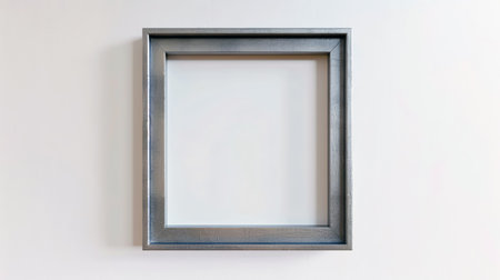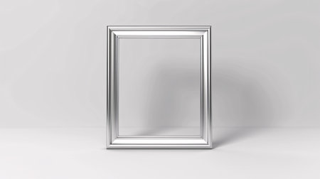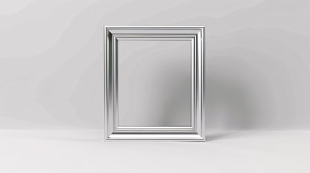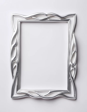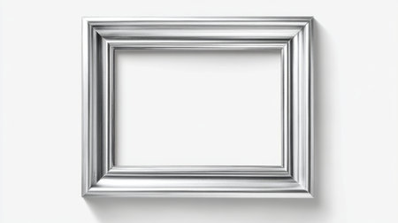 A stylish silver frame sits against a clean white background, perfect for showcasing art. Ideal for presentations, displays, or creative projects in various settings.