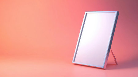 This image features an elegant full-length mirror with a silver frame set against a soft pink gradient background, perfect for modern home decor and design concepts.