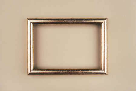 Gold text frame on a beige background. Copy space for text.