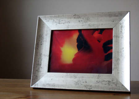 silver frame on a wood background