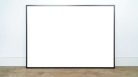 White poster on floor with black frame mockup for you design. Layout mock up good use for your design preview. Frame mock-up with copy space.