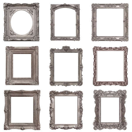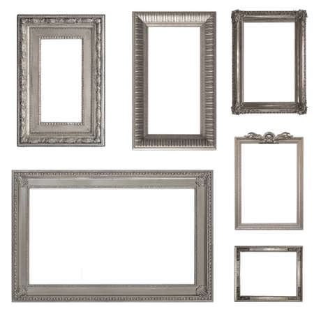 Set of silver frames for paintings, mirrors or photo isolated on white background