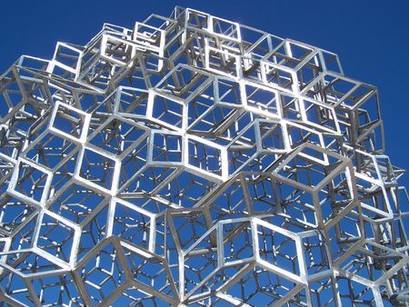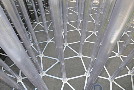 Industrial design, structural engineering, architecture, construction. A metal structure made of many steel rods welded together