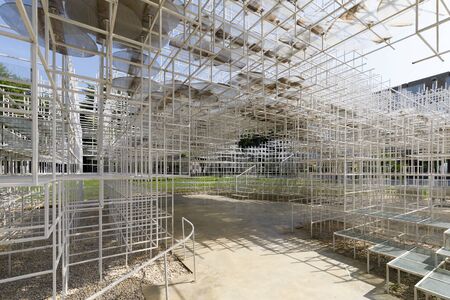 Metal tubes construction under the stadium tribune.