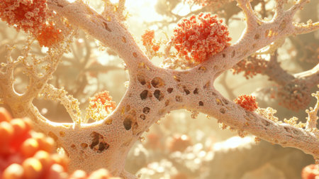 Lungs resembling coral with intricate textures and vibrant colors on a dark background highlighting natures beauty.