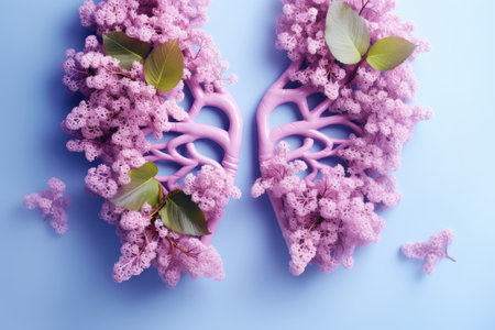 human lungs with pastel flowers, health and disease concept.