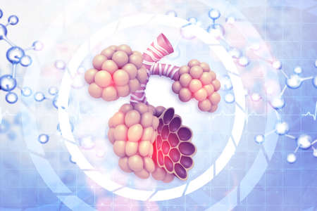 Anatomy of alveoli in lungs, illustration. Microstructure of respiratory system, 3D illustration