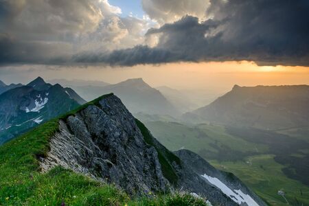 Beautiful sunset on the mountain Speer, Glarus Switzerland