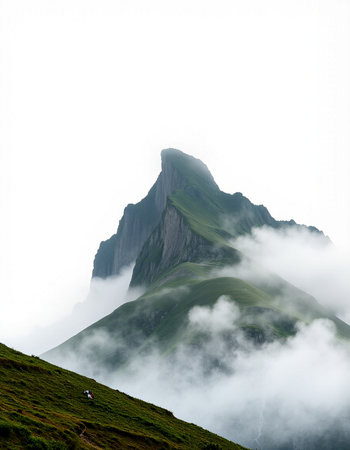 Beautiful top of mountain surrounded by clouds. Generative AI