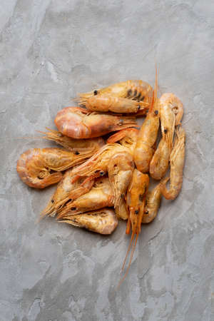spicy shrimps. Cooked Shrimp. a lot of boiled peeled shrimp. Concept of healthy diet.