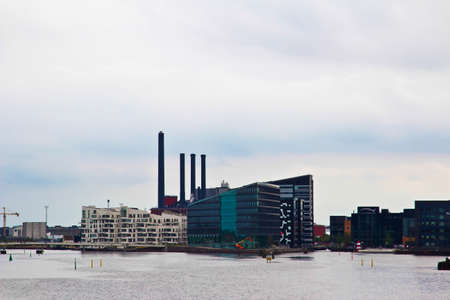COPENHAGEN, DENMARK - JULY 21, 2015: Photo of industrial buildings in the harbour of Copenhagen. Photo taken on July 21th 2015.