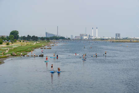 Copenhagen, the capital of Denmark. The picture is taken in the northeast part of the city. This is the Channel between the Amager island to the left, and the city center to the right. Wide angle.
