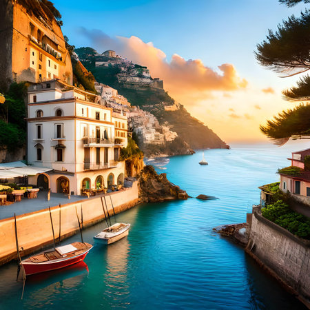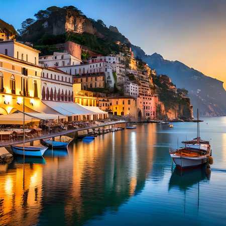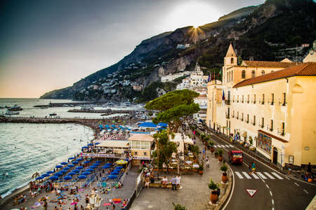 Amalfi coast at sunset, Italy. Amalfi is one of the most beautiful villages in Italy.