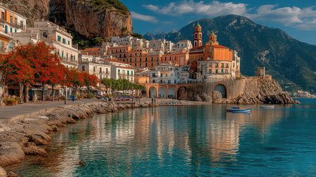 Beautiful coastal towns of Italy - scenic Amalfi town. Famous destination location for tourists visiting Italy.