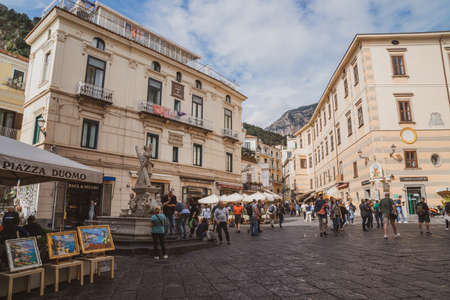 Amalfi, Italy - 1 November, 2019: Street scene of Amalfi Town, Italy. Travel