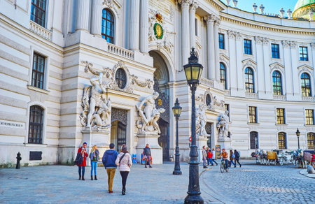 VIENNA, AUSTRIA - SEPTEMBER 1, 2013: Architectural detail at the entrance of The Hofburg imperial palace in Vienna, Austria