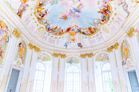 BERLIN, GERMANY - AUGUST 11, 2017: Paintings on a ceiling damaged during WW2 at Charlottenburg Palace in Berlin, Germany