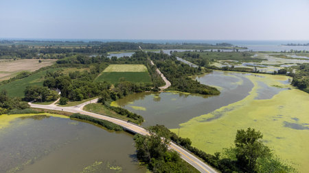 Aerial view of the Danube Delta in Romania, Europe.