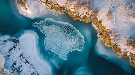 Aerial view of frozen Baikal lake in winter, Russia
