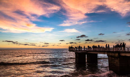 Jetty at sunset along Galle Face Road boarding the Indian ocean in Colombo, Sri Lanka