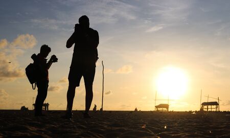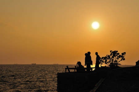 Relax on the beautiful sunset beach on Koh Chang, Thailand. Silhouette at people on the ocean beach at sunset on Koh Chang,Thailand. The beauty of the people who are enjoying the sunset on the beach, Thailand.