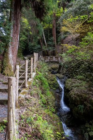 Stone bridge on the river in the forest near Amanoyasugawara Shrine, Takachiho, Miyasaki, Kyushu, Japan