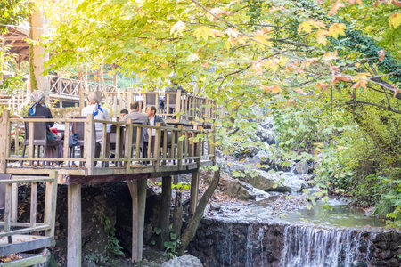 Unidentified people having breakfast at a restaurant in Masukiye,a popular destination for eating and spending time.Kocaeli.Turkey.22 October,2017