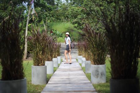 KANCHANABURI THAILAND - JANUARY 11 : Unidentified People come to visit and relax to take pictures on January 11,2020 at Mulberry Mellow in Kanchanaburi, Thailand.