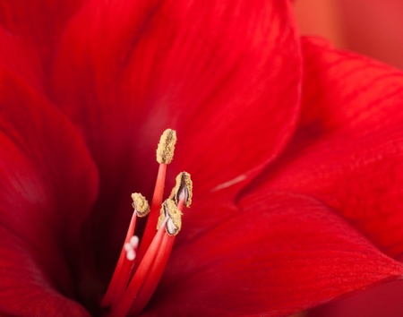 beautiful red amaryllis flower, visible stamens and pistil, macro