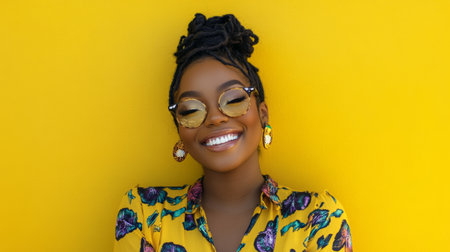 Bask in the sunshine of positivity as a young African man exudes a radiant smile against a vibrant yellow background. His joy brings warmth to the scene.
