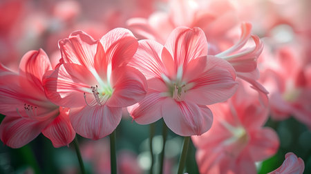 Vibrant amaryllis flowers in beautiful light showing their unique beauty