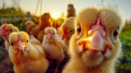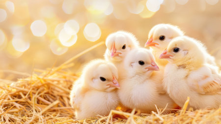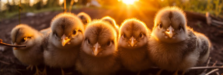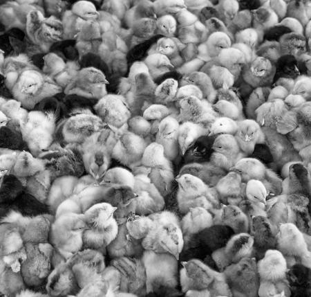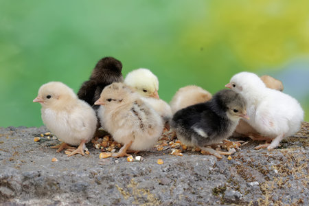 Rearing small chicks. Poultry farming. Agricultural theme.